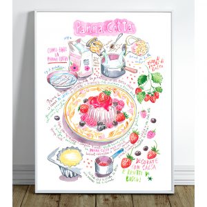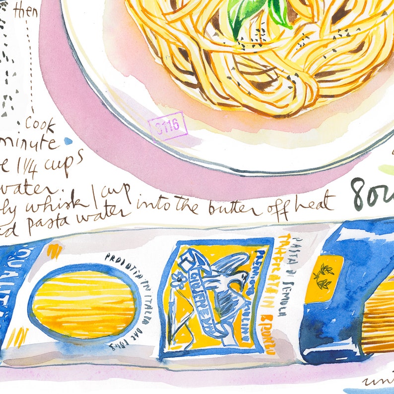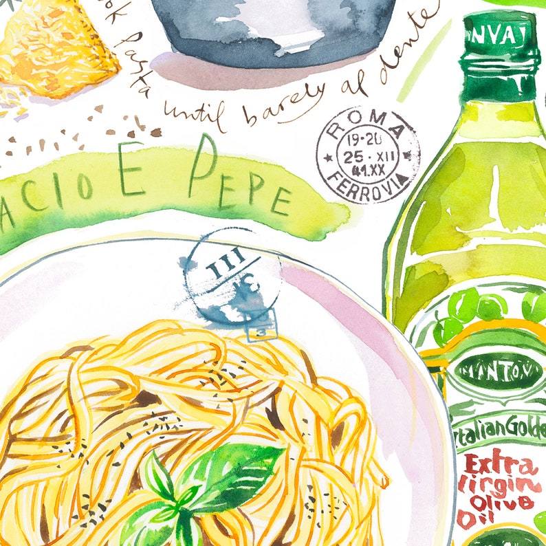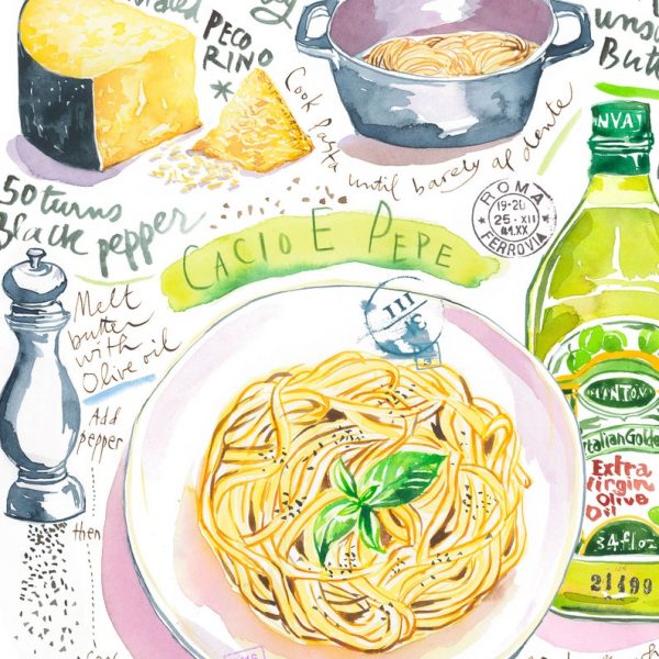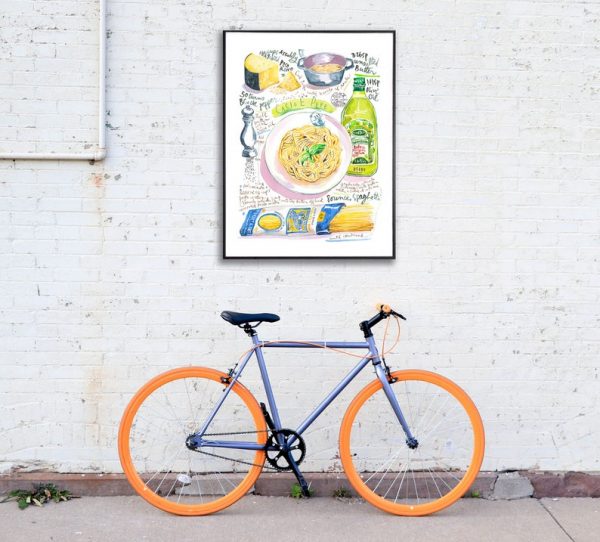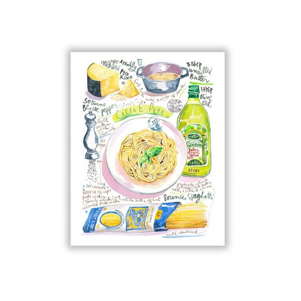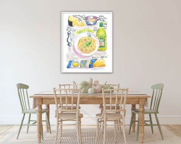Pasta recept poster Cacio e pepe. Italiaanse keuken kunst aan de muur.