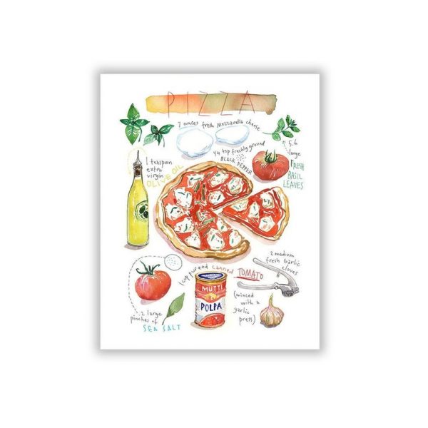 Pizza recept poster voor elke Italiaanse thema keuken inrichting en voor Pizza en Italië liefhebbers.